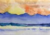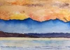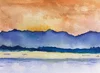 5 x 7" watercolor - sunset over puget sound and the olympic mountains X