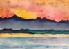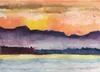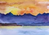5 x 7" watercolor - Sunset Over Puget sound and the Olympic Mountains II
